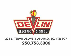 Dave Thorburn started working at Bayliss Neon in 1947, married the boss? daughter in 1948, went to New York City to learn neon bending in 1949 and moved to Nanaimo in 1952 to set up a regional branch office for Bayliss Neon. After 10 years the branch office was closed and Dave Thorburn started the D. Devlin Company in 1963, incorporated in 1971 as Devlin Signs Ltd., and modified the name to Devlin Electric Sign Co. Inc. in 1989.