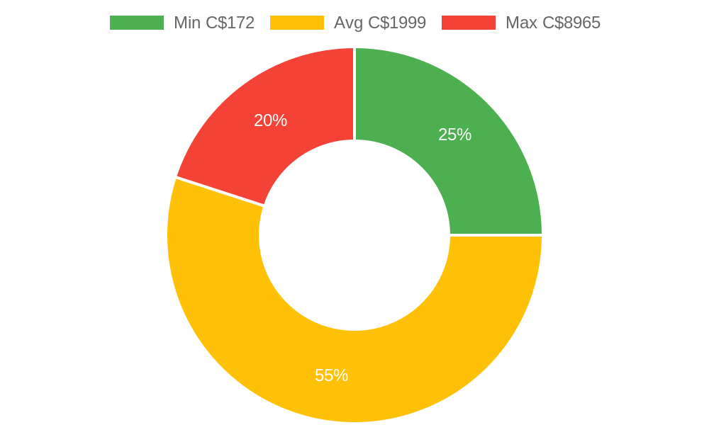 According to statcan.gc.ca the minimum dentists costs for homeowners in Vancouver Island is C$172, the average is C$1999 and the maximum is C$8965.